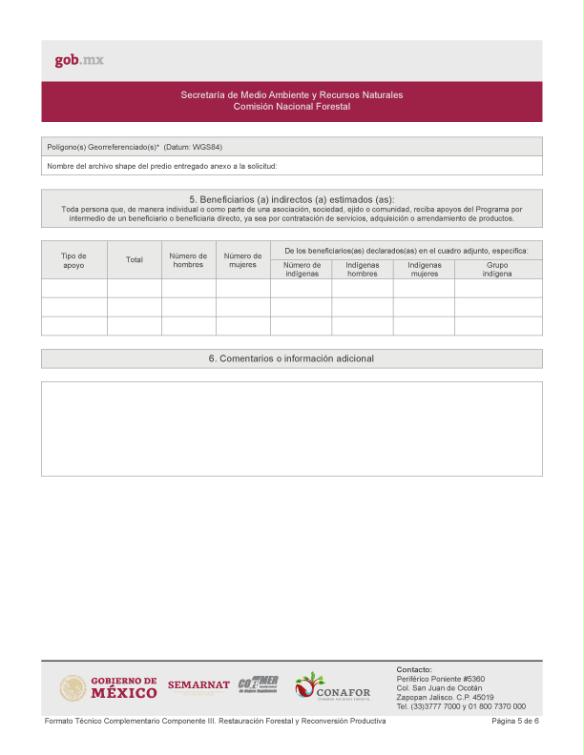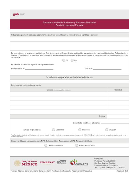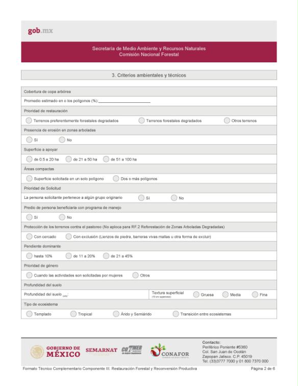 | RF.1 Reforestación y restauración | Única | 5,000/ha | 2 apoyos diferentes en distintos polígonos más uno de RF.3, en caso de que aplique | No aplica | 1,000 | Reforestación y suelos |