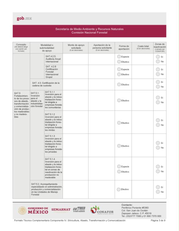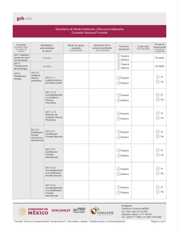 | SAT.4.3 Certificación de la cadena de custodia | 105,000 | IV y Empresas Forestales Comunitarias, mixtas y privadas | 1 | No aplica | No aplica |