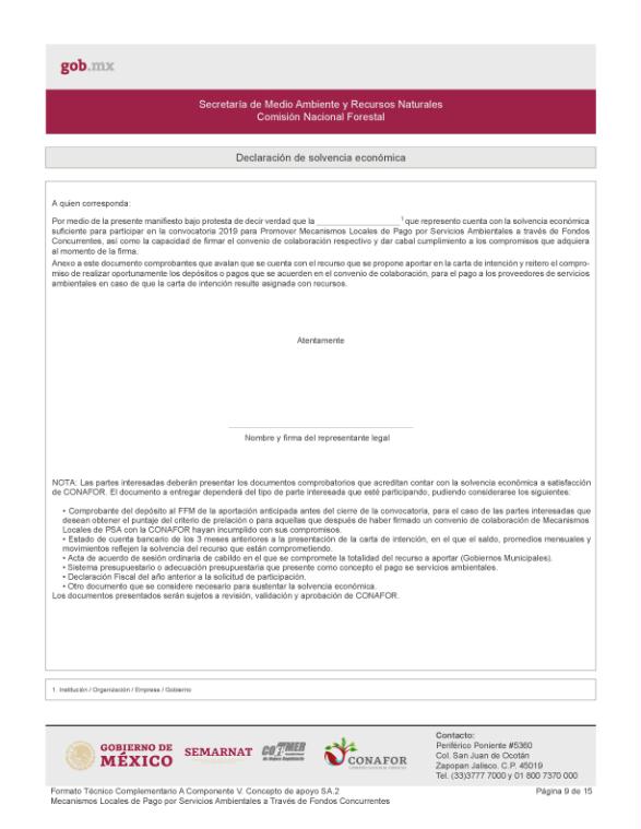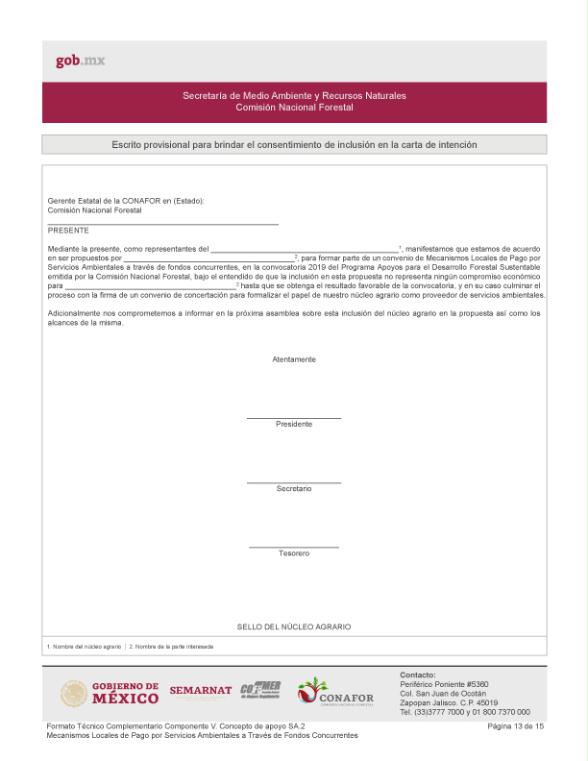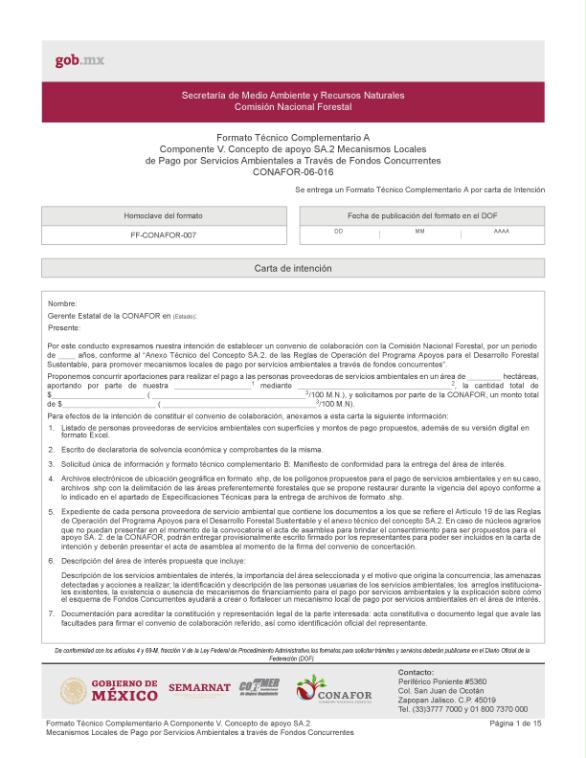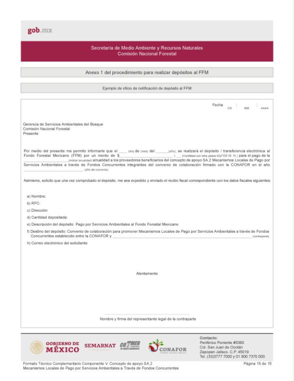| SA.2 Mecanismo Locales de Pago por Servicios Ambientales a través de Fondos Concurrentes | Dentro de los 30 días hábiles contados a partir del siguiente al cierre de la recepción de cartas de intención. |