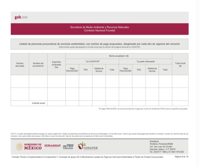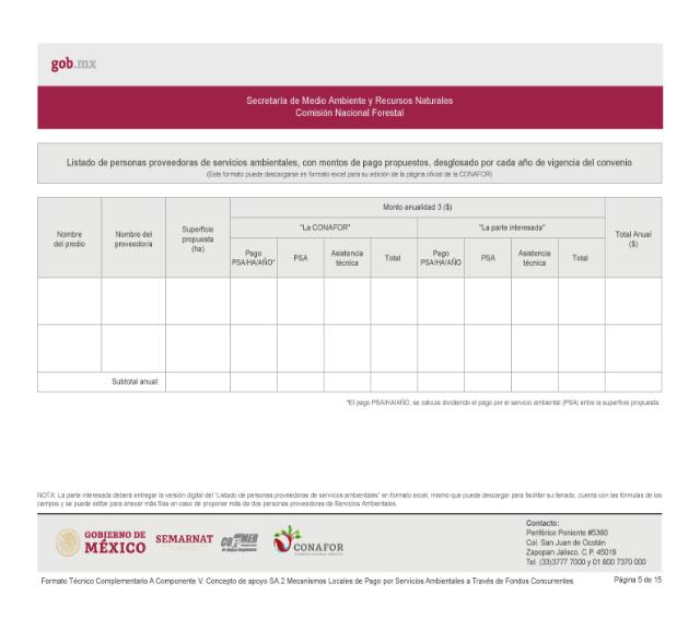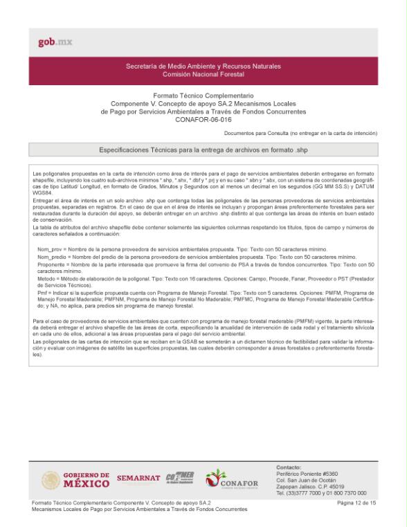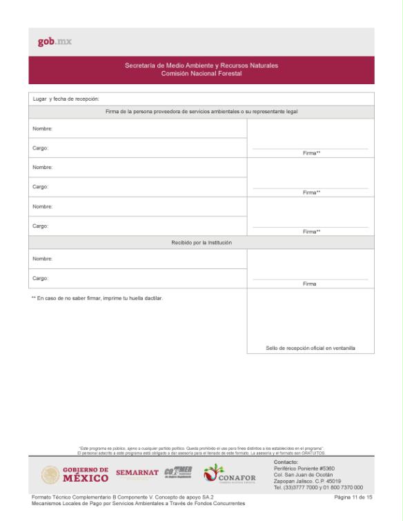 | Componente V. Servicios Ambientales | SA.1 Pago por Servicios Ambientales | Dentro de los 15 días hábiles contados a partir del siguiente al de la publicación de resultados. |