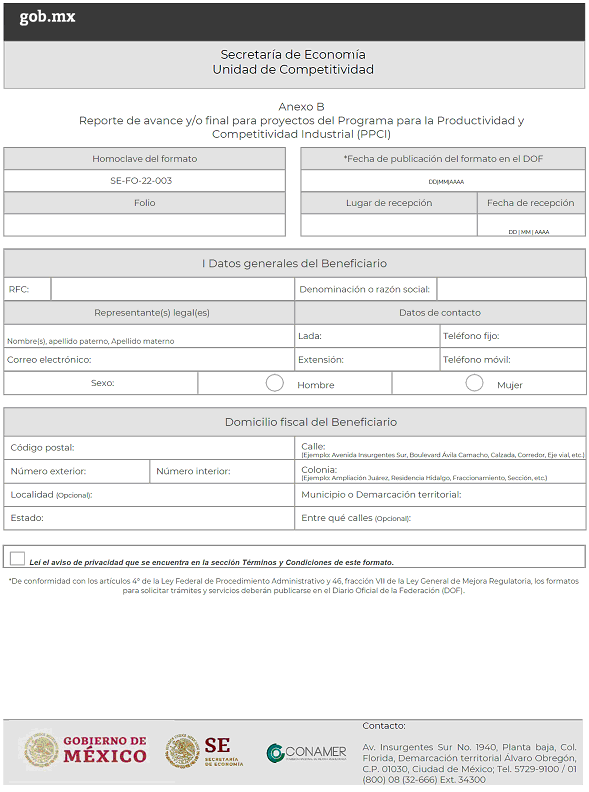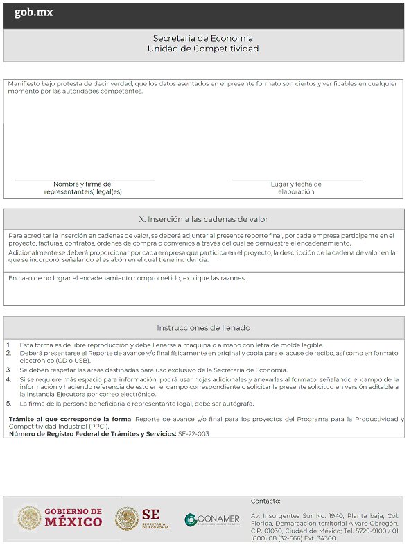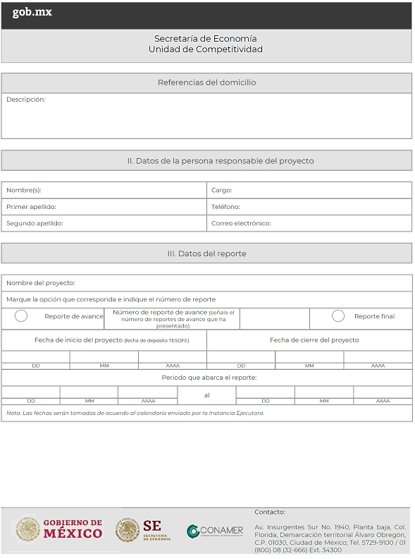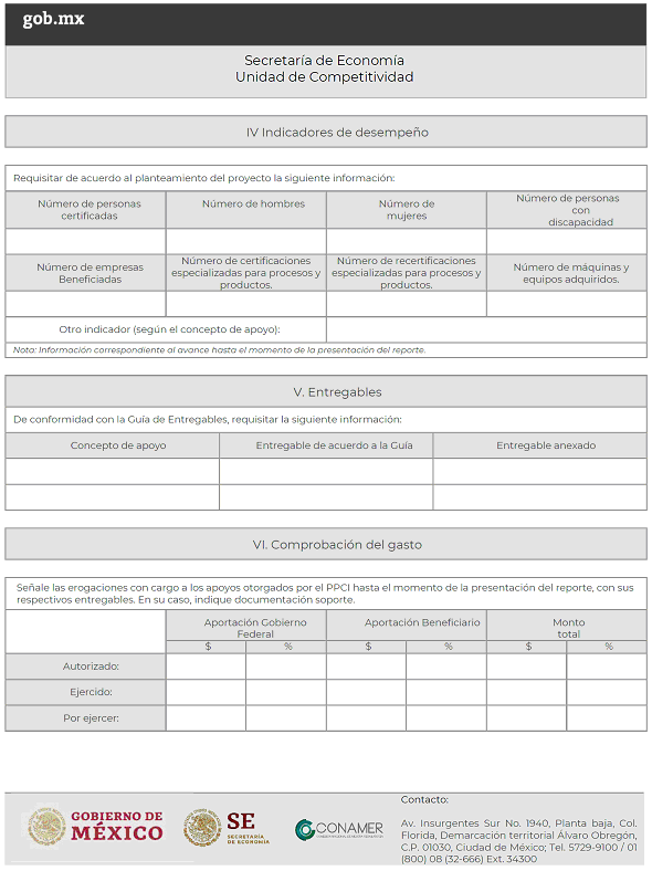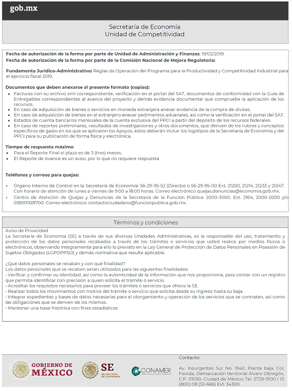 Reporte de avance y/o final para proyectos del Programa para la Productividad y Competitividad Industrial