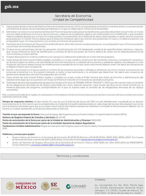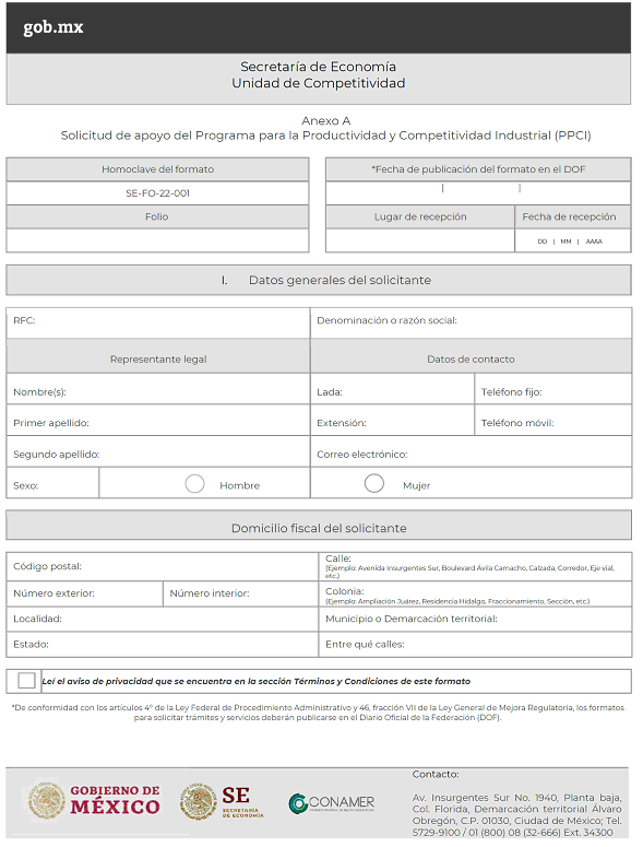 Solicitud de apoyo del Programa para la Productividad y Competitividad Industrial (PPCI)