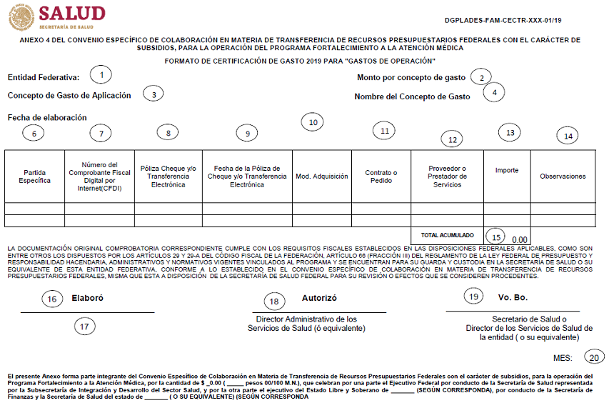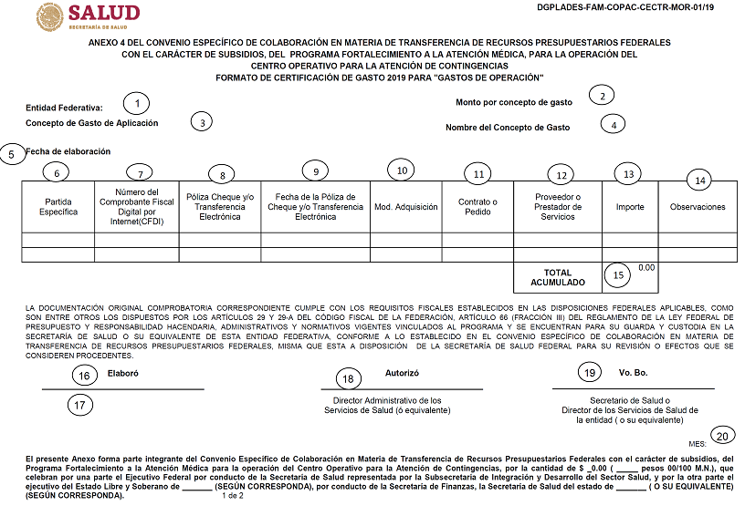 | 29 | Nombre y firma del Secretario de Salud, quien Certifica la comprobación del gasto de conformidad con la normatividad aplicable. |