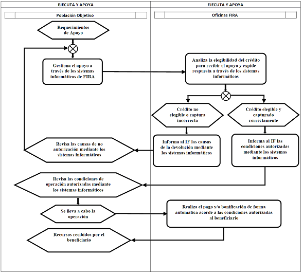 Estos Fideicomisos forman parte del Sistema Bancario Mexicano y operan en segundo piso por conducto de los Intermediarios Financieros que estén autorizados para operar con FIRA, las cuales pueden otorgar financiamientos directamente al acreditado final o bien a otro intermediario para que éste los haga llegar a los