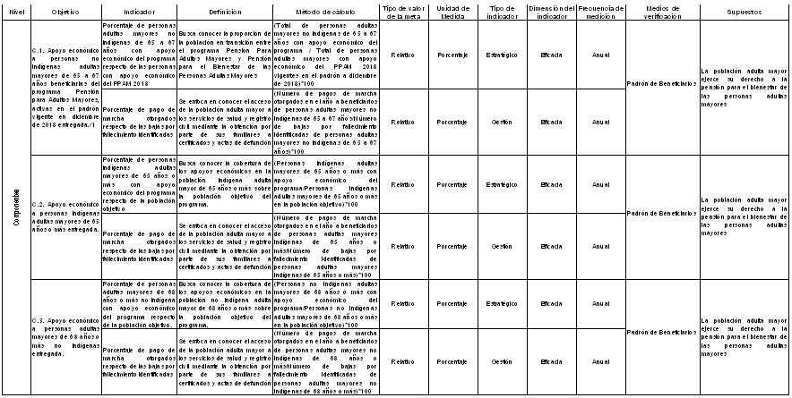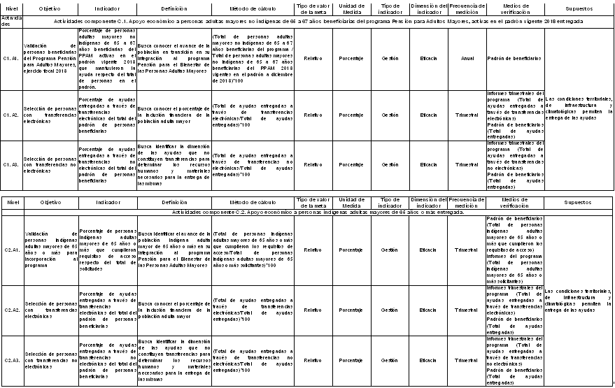| Personas adultas mayores de 65 a 67 años de edad inscritas en el Padrón Activo de Beneficiarios del Programa Pensión para Adultos Mayores activos a diciembre del ejercicio fiscal 2018. | ||
