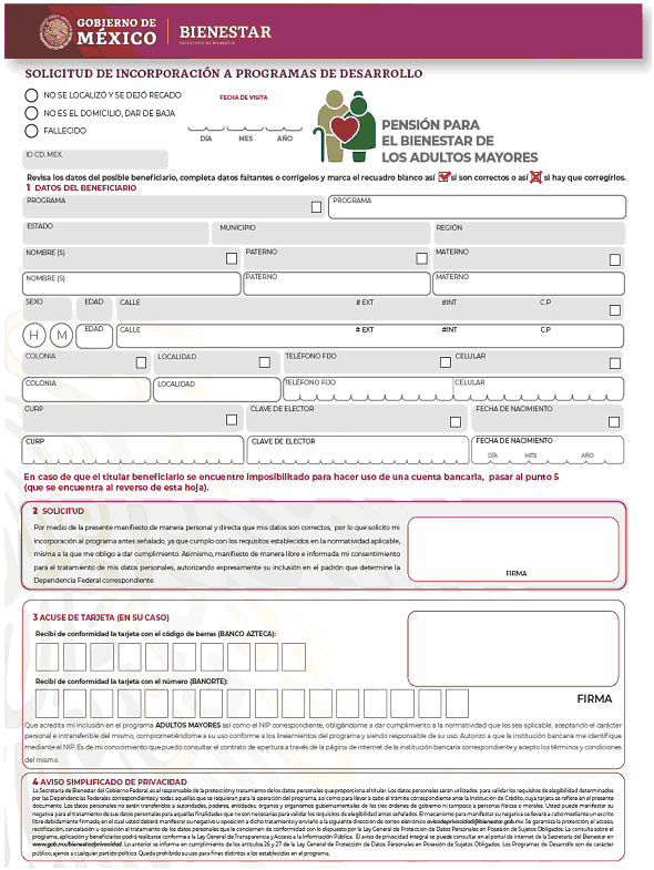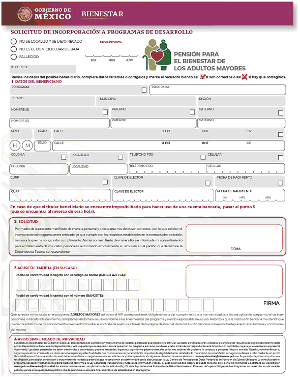 | Personas adultas mayores de 68 años o más de edad, mexicanas que residan en la República Mexicana. | ||