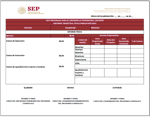 Avance físico presupuestario. - Para el tipo básico, es aquel documento que realizan las AEL, en donde informan de manera trimestral a la Instancia normativa el avance del ejercicio presupuestario, detallando la aplicación del recurso ministrado y ejercido, así como el cumplimiento de las acciones comprometidas.