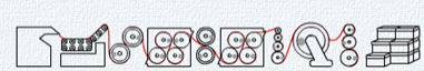 d. el papel de la bobina pasa por máquinas cortadoras que le dan el formato final al producto.