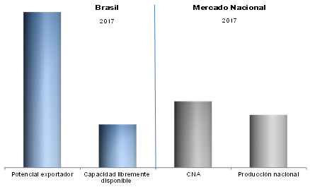Mercado nacional vs potencial exportador de Brasil en 2017