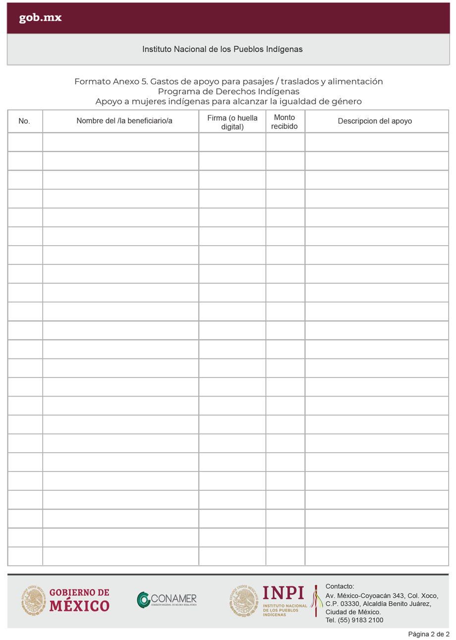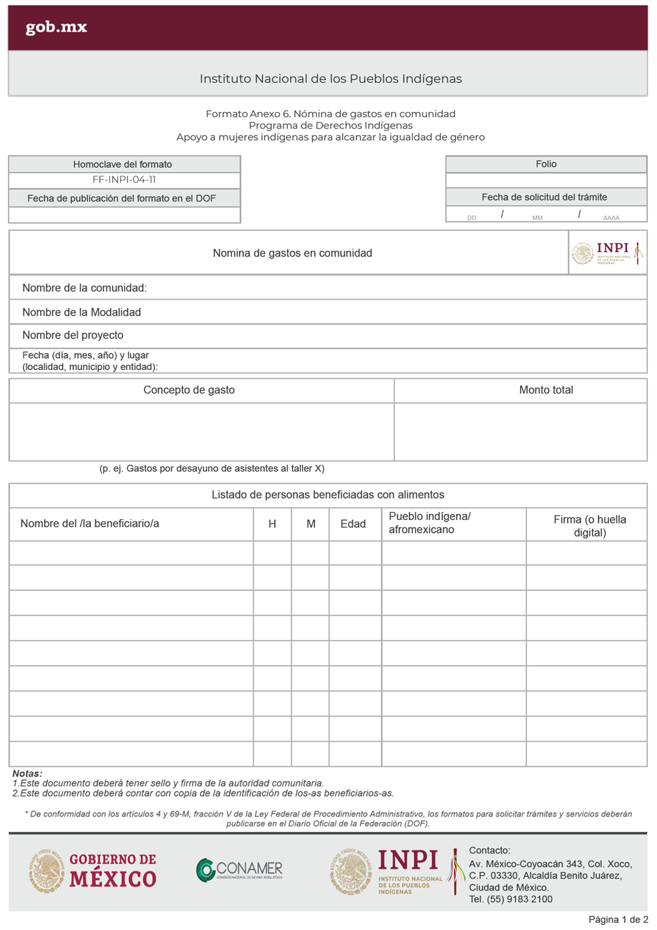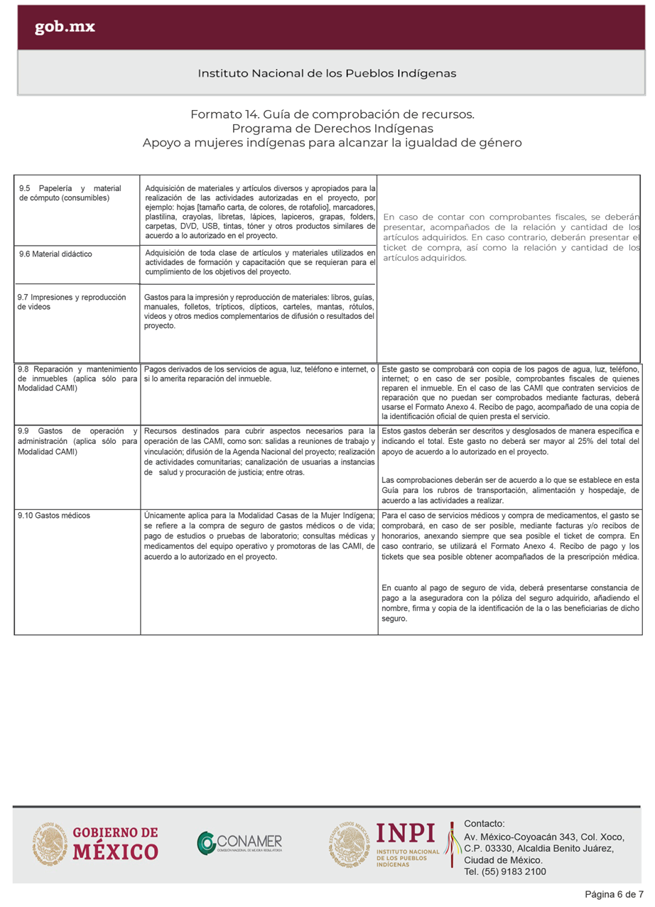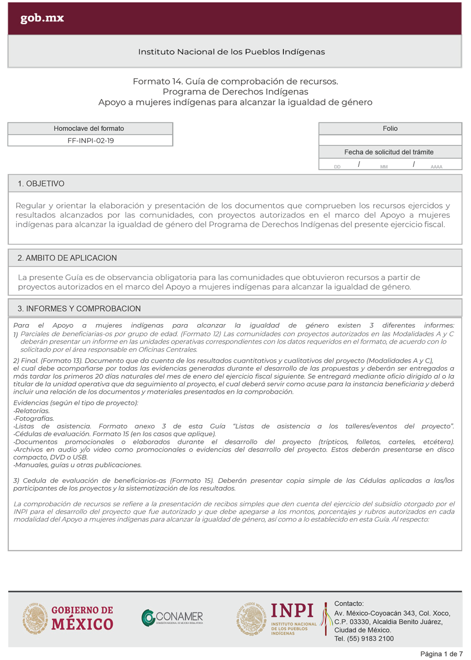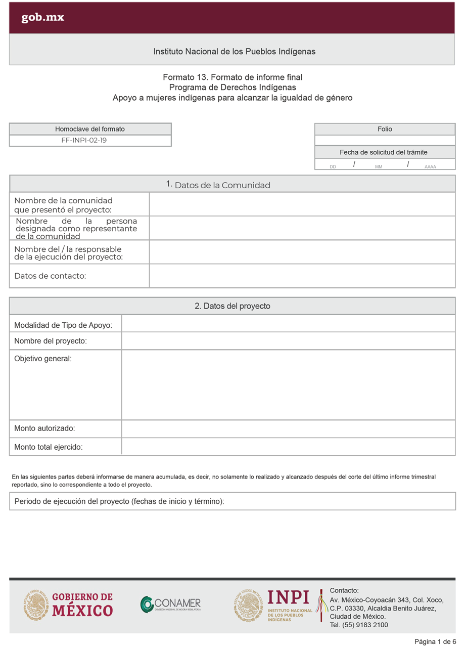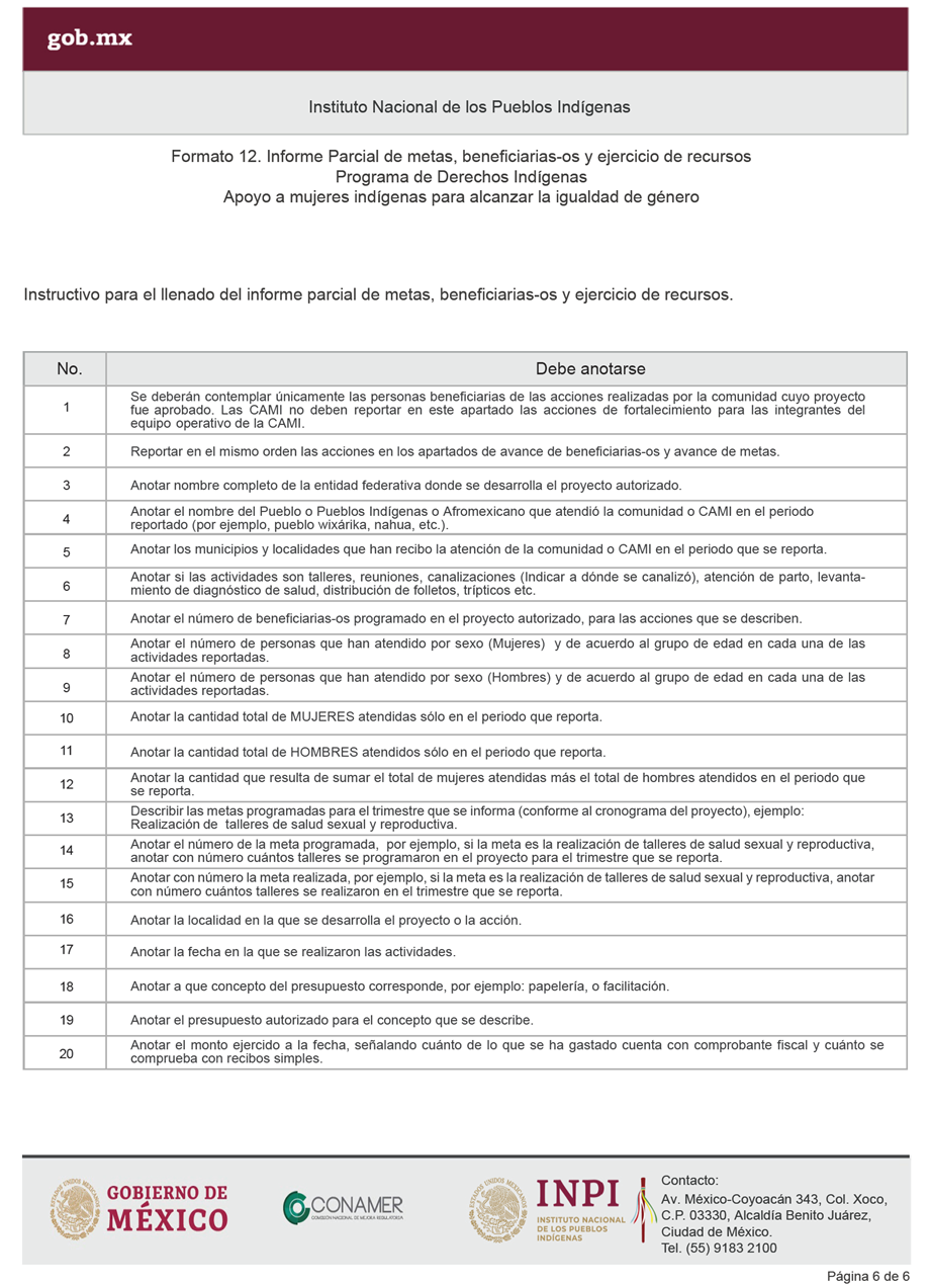 Simplificación administrativa del trámite Apoyos del Programa de Derechos Indígenas. Tipo de Apoyo Derecho a la Igualdad de Género, con modalidad Apoyo para apertura de una Casa de la Mujer Indígena (CAMI) con Homoclave (CDI-04-010-B) mediante la eliminación de los siguientes requisitos: Copia simple de la Cédula de Inscripción al RFC de la instancia solicitante. En este caso el documento solicitado es el acta que emite el Servicio de Administración Tributaria al momento en que asigna el Registro Federal de Contribuyentes. Quedan excluidas de este punto las CAMI de continuidad que no están constituidas legalmente, así como los grupos de trabajo que soliciten apertura de Casa; Las organizaciones constituidas en el ejercicio vigente deberán presentar copia de la Clave Única de Registro (CLUNI); Las organizaciones constituidas deberán adjuntar el acuse del informe ante INDESOL del ejercicio fiscal anterior; Documento expedido por el Servicio de Administración Tributaria (SAT), donde se haga constar que la instancia está al corriente con sus obligaciones fiscales. Aplica para las organizaciones que estén legalmente constituidas; Copia simple del acuse de recibo del informe final y comprobación de recursos del último año que haya ejecutado proyecto con financiamiento de la CDI, en caso que aplique; Copia simple del acta constitutiva protocolizada, así como copia de acta protocolizada que da vigencia a la representación legal de la organización; o copia del acta de la conformación del grupo de trabajo que presenta la solicitud; En el caso de adquisición de un bien inmueble, éste deberá tener un periodo de vida futura de al menos 30 años, que deberá comprobarse mediante dictamen de habitabilidad o dictamen técnico único expedido por autoridad competente. Para el caso de los grupos de trabajo, no aplica la compra del terrero o inmueble para la instalación de la CAMI; Registrar en el sistema informático, el nombre de dos propuestas de personas físicas o morales para realizar el acompañamiento especializado a la Casa de la Mujer Indígena durante el primer año de operación del proyecto. Se dará prioridad a las propuestas que consideren como asesora acompañante a mujeres indígenas; y Carta del Municipio y/o las autoridades tradicionales, según corresponda, de la cobertura en donde se pretende instalar la CAMI, mediante la cual se manifieste que las autoridades conocen el proyecto, el trabajo de la organización o grupo de mujeres y que están de acuerdo con la apertura de la Casa, dicha carta deberá estar firmada y sellada.