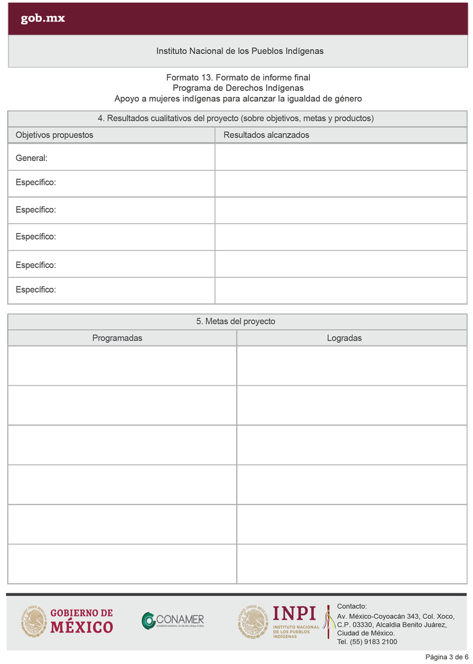 a) El proyecto deberá presentarse de manera física en la Unidad Administrativa del INPI más cercana a la comunidad en la que se desarrollará el proyecto, de acuerdo con la Guía para comunidades indígenas y afromexicanas interesadas en presentar proyectos en la convocatoria de fortalecimiento para el ejercicio de derechos de las mujeres indígenas y afromexicanas en sus diferentes etapas de vida y condiciones de vulnerabilidad (Formato 9).