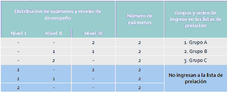 Para todos los instrumentos se utilizarán tres niveles de desempeño posibles: Nivel I (NI), Nivel II (NII) y Nivel III (NIII). Los descriptores genéricos para cada uno de ellos se indican en la Tabla 1.