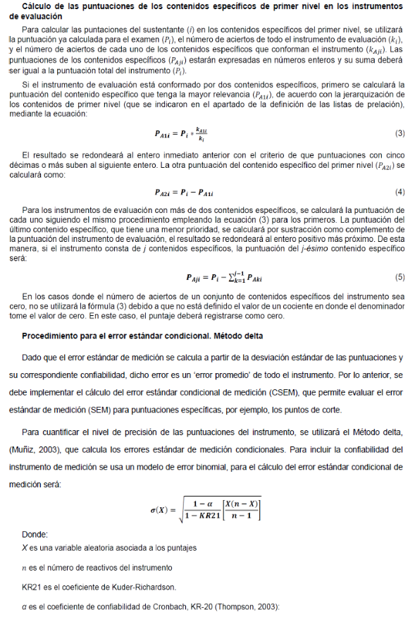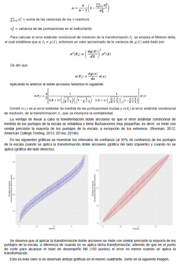 Para mayores detalles sobre los procesos que se llevan a cabo para el escalamiento de las puntuaciones, consultar el anexo técnico.