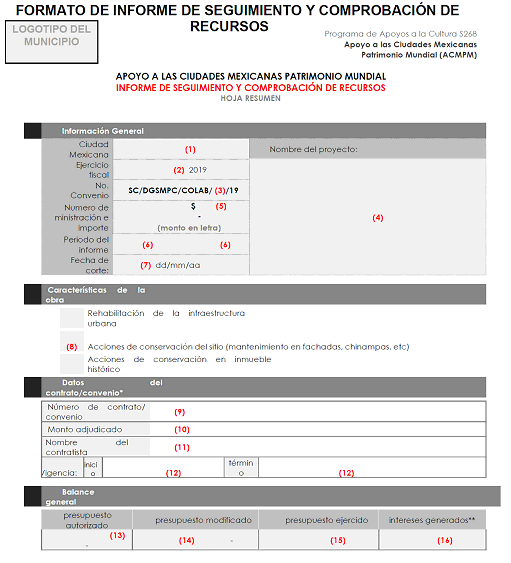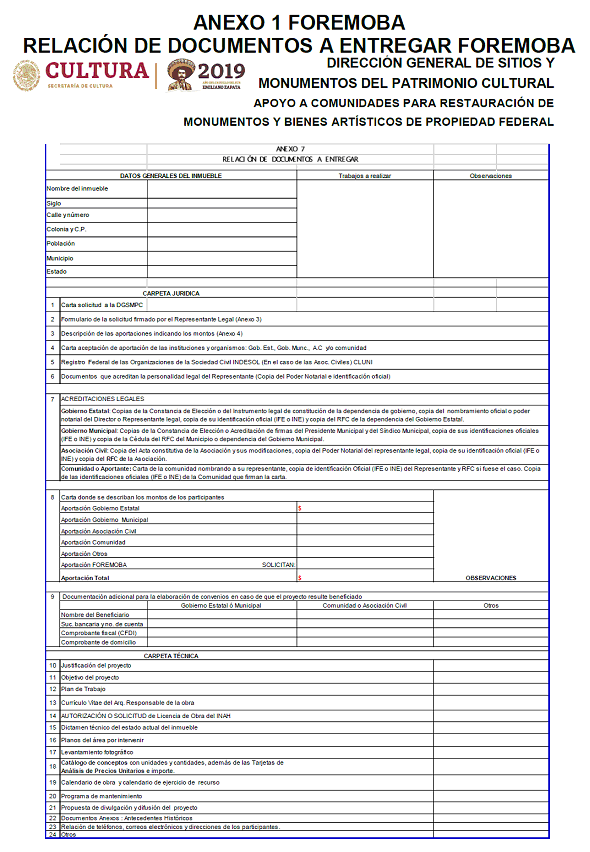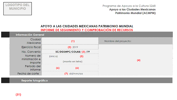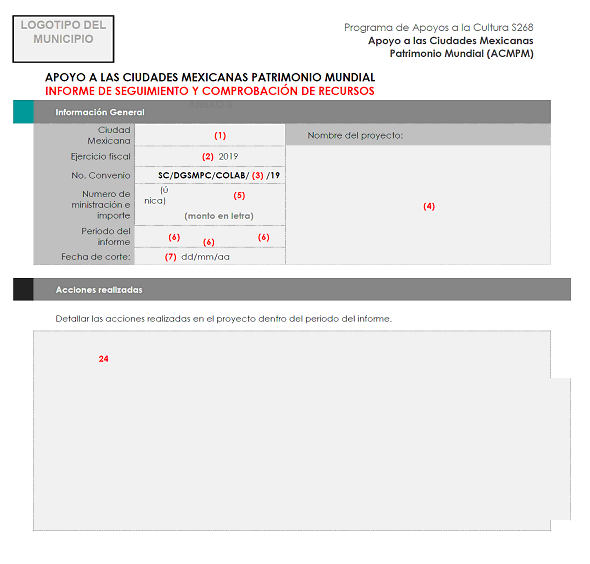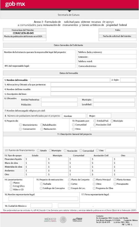 3. No. de convenio: Campo requisitado por la Secretaría de Cultura. No requiere registro.