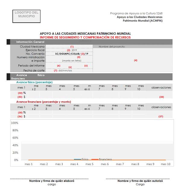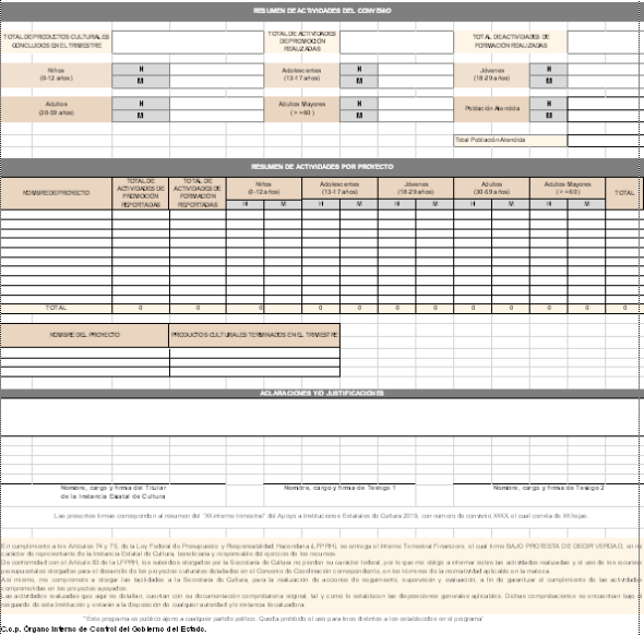 f) Los informes deberán describir las actividades realizadas y las erogaciones correspondientes, en los formatos que para ello establezca "LA SECRETARÍA", con el fin de observar su correcta aplicación.