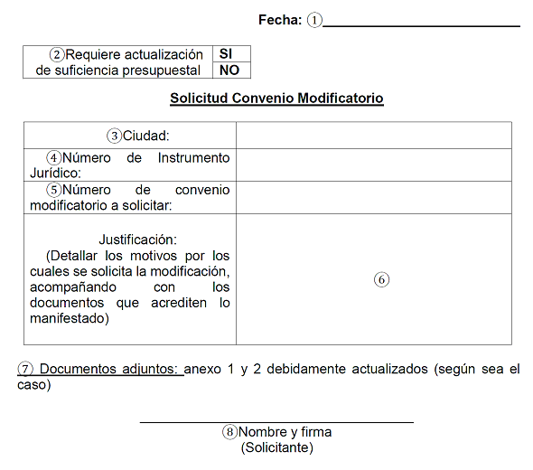 5. No. de convenio modificatorio: Campo requisitado por la Secretaría de Cultura (en su caso). No requiere registro.