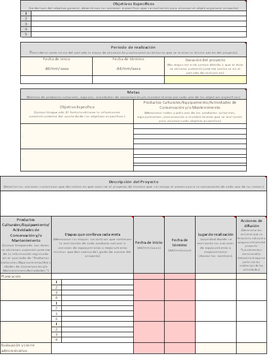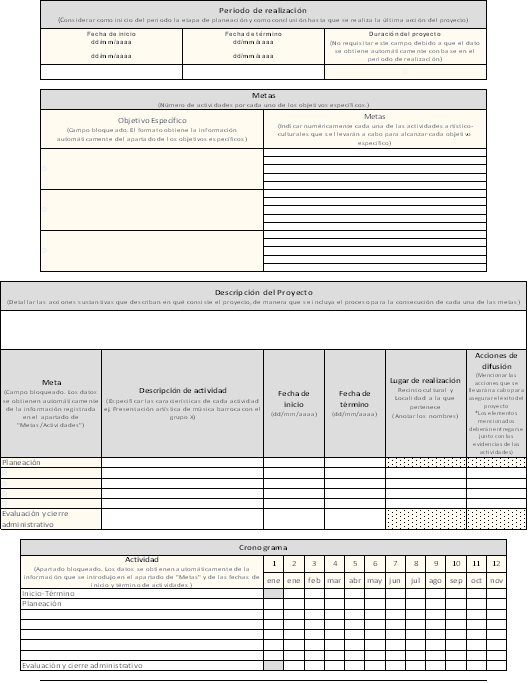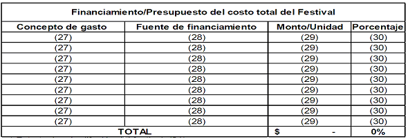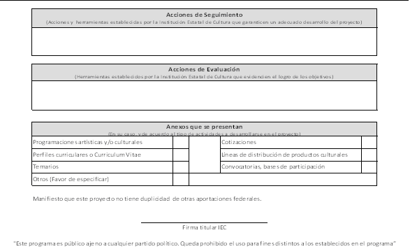 b) Sujetarse al contenido del proyecto cultural que fue presentado al Jurado Dictaminador de "EL PAICE", en la _______ Sesión, de fecha __ de ______ de 20__;
