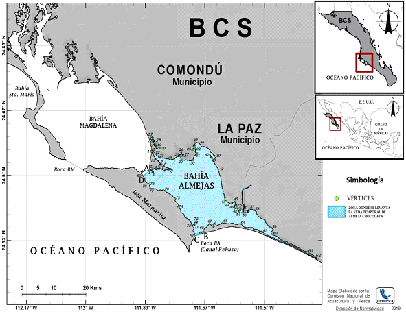 | 69 (B) | 24.353878 | -111.667890 | 432268.38 E | 2693666.09 N |