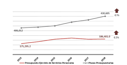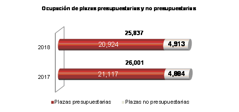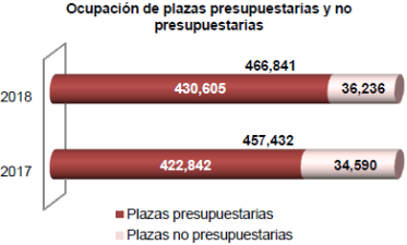 | Plazas presupuestarias | 422,842 | 430,605 | 7,763 | 1.80 |