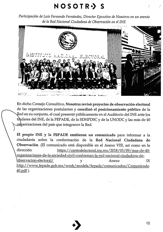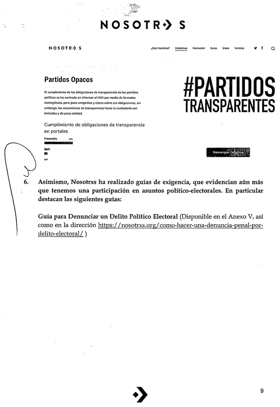 El 2o. Informe de Cumplimiento de las Obligaciones de Transparencia de los Partidos Políticos (contenido en el Anexo III de este escrito, así como en https: // nosotrxs.org/ informe-de-cumplimiento-de-las-obligaciones-detransparencia-de-los-partidos-poli ticos /) se llevó a cabo en abril de 2018.