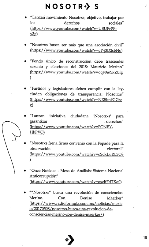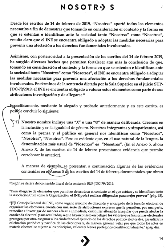 - Anexo X. Evidencias del uso de las palabras Nosotros, Nosotras, Nosotres y Nosotrxs con la que se identifica la asociación (Notas periodísticas, videos. (Anexo 5 de los escritos de 14 de febrero de 2019).