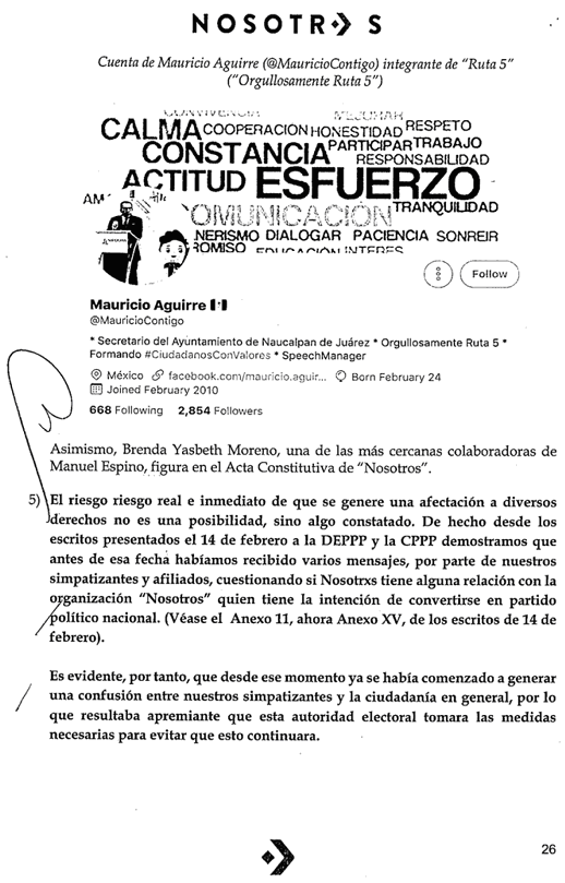 iii. Se identificó que Mauricio Aguirre es integrante de "Ruta 5" y Secretario del Ayuntamiento de Naucalpan de Juárez.