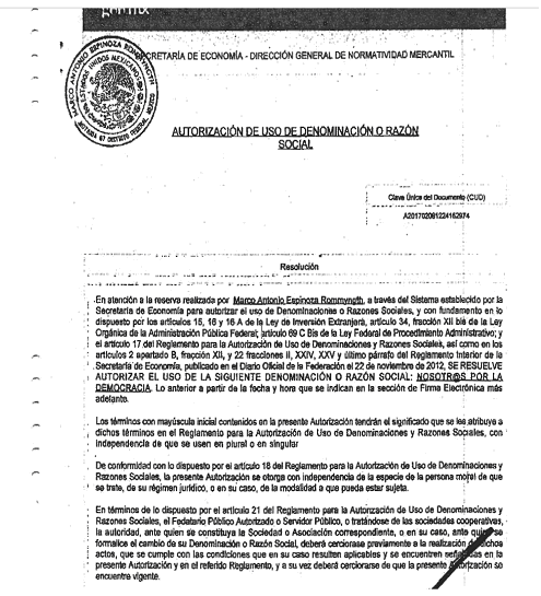 2. Este Consejo General reconoció la similitud entre la denominación "Nosotros" con "Nosotrxs" utilizada por la asociación civil "Nosotr@s por la Democracia" en papel membretado o en sus inserciones periodísticas; sin embargo, no apreció la vulneración de la normativa electoral para que, dentro del ámbito de sus atribuciones, fuera restringido el empleo de dicha denominación por parte de la organización que pretende constituirse como partido político.