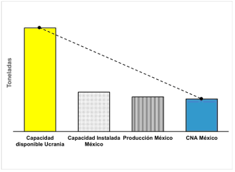 las expectativas de crecimiento de la producción de acero en el mercado nacional, y toda vez que Ucrania enfrenta restricciones en algunos mercados debido a medias antidumping impuestas por Estados Unidos y la UEEA, sugieren la existencia de excedentes importantes de exportación, lo que es un incentivo para la desviación de comercio de las exportaciones de dicho país hacia México.
