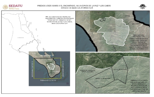 PRIMERO: La Secretaría de Desarrollo Agrario, Territorial y Urbano pone a disposición de la Secretaría de Medio Ambiente y Recursos Naturales, a través de la Comisión Nacional de Áreas Naturales Protegidas, para su administración, el predio denominado "El Encantado", ubicado en el municipio de La Paz, estado de Baja California Sur, con una superficie de 883-65-65.44 hectáreas.