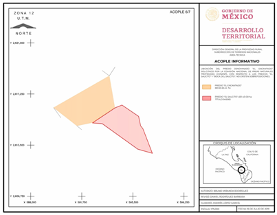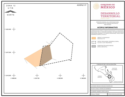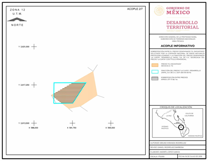 Al margen un sello con el Escudo Nacional, que dice: Estados Unidos Mexicanos.- DESARROLLO TERRITORIAL.- Secretaría de Desarrollo Agrario, Territorial y Urbano.- Subsecretaría de Ordenamiento Territorial.- Dirección General de la Propiedad Rural.