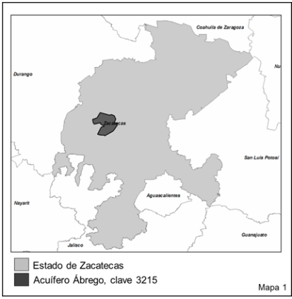 Para mayor precisión se ilustra en el siguiente mapa, la ubicación del acuífero Ábrego, clave 3215, en el Estado de Zacatecas: