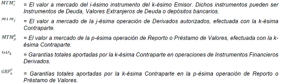 I. Se considerará la suma de (i) el valor a mercado de los Instrumentos Estructurados emitidos sin el mecanismo de llamadas de capital, (ii) el valor a mercado de las llamadas de capital ya realizadas de los Instrumentos Estructurados emitidos bajo el mecanismo de llamadas de capital y (iii) el equivalente en pesos del mínimo entre el 35% del valor nocional de la emisión o el valor nocional de
