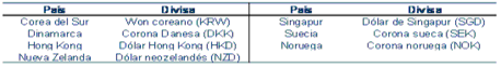Relación de Índices Accionarios de Países Elegibles para Inversiones aprobados para determinar