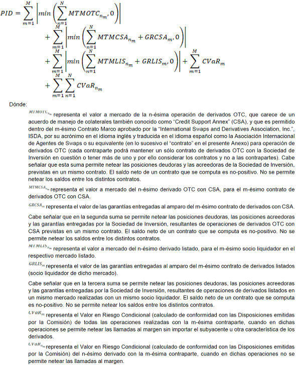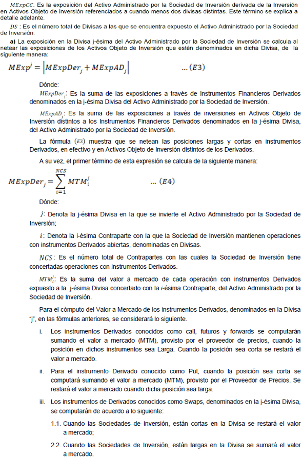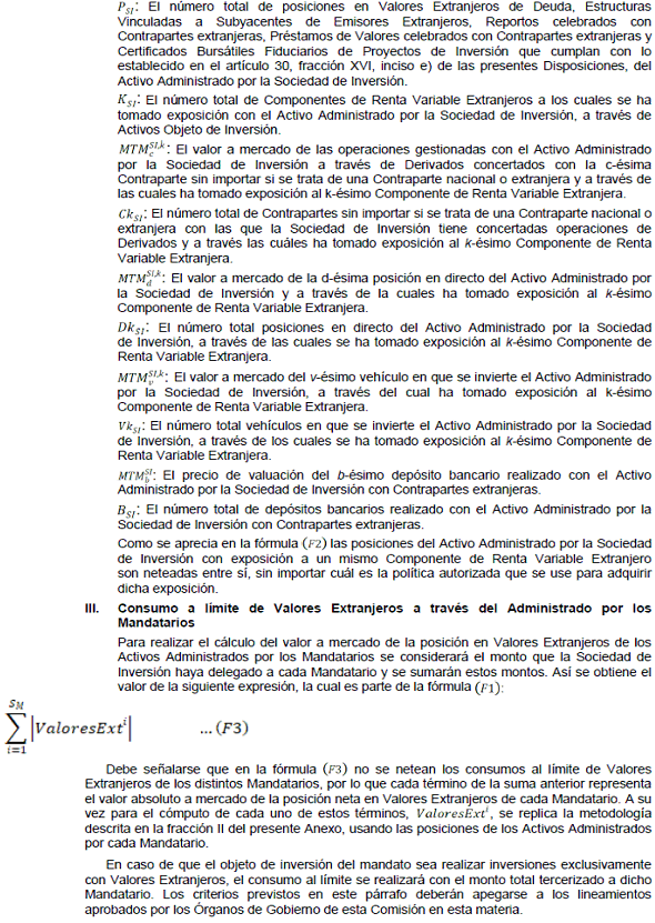 Por lo anterior, los Vehículos no serán desagregados para fines de supervisar los límites de concentración aplicables, de conformidad con lo previsto en el Anexo N de las Disposiciones generales que establecen el régimen de inversión al que deberán sujetarse las Sociedades de Inversión; la exposición de las inversiones en dichos Vehículos e índices serán computadas considerando integralmente el Valor Delta Equivalente de la Nota adquirida o estructurada, Estructura Vinculada a Subyacente, Componente de Renta Variable, Instrumento Financiero Derivado o cualquier otro Vehículo permitido que repliquen el comportamiento del índice dictaminado favorablemente por los expertos independientes.