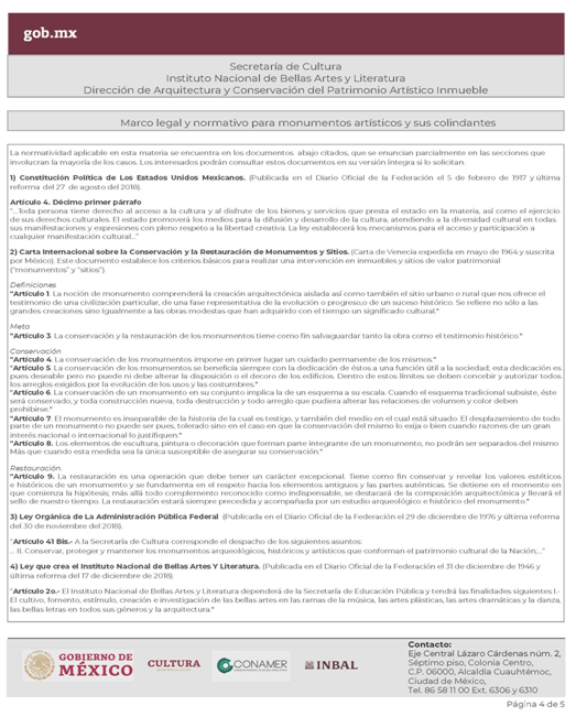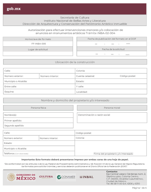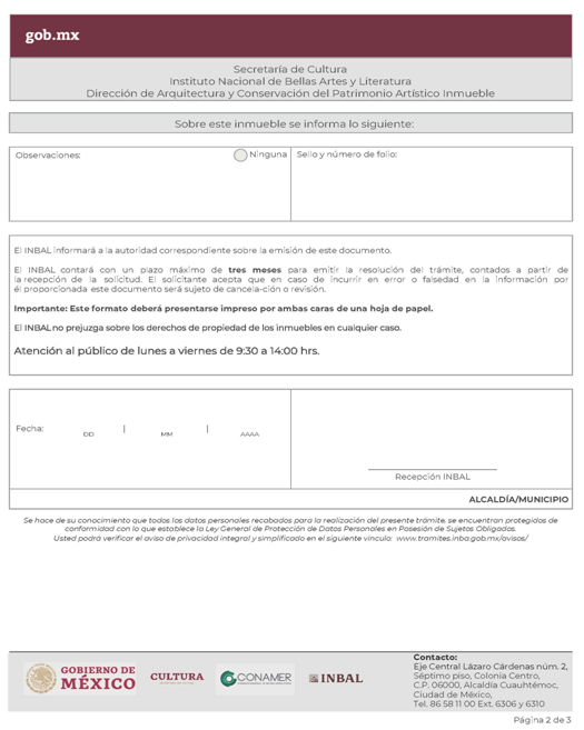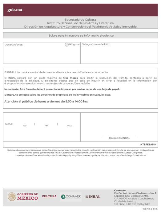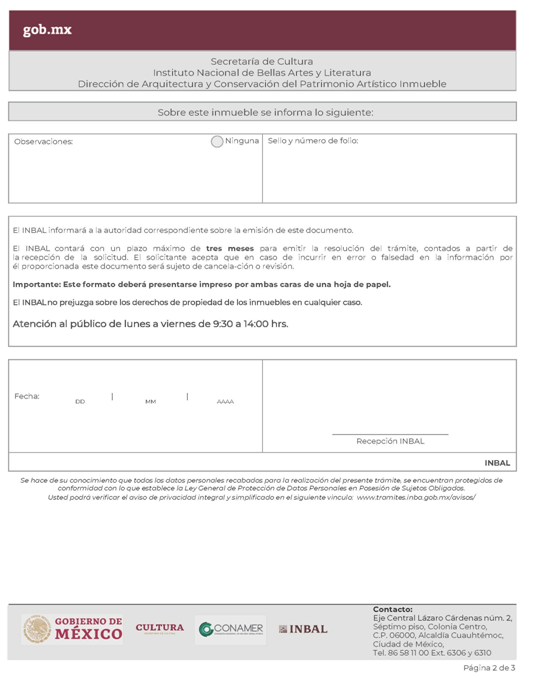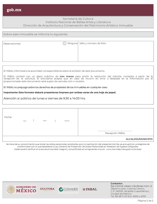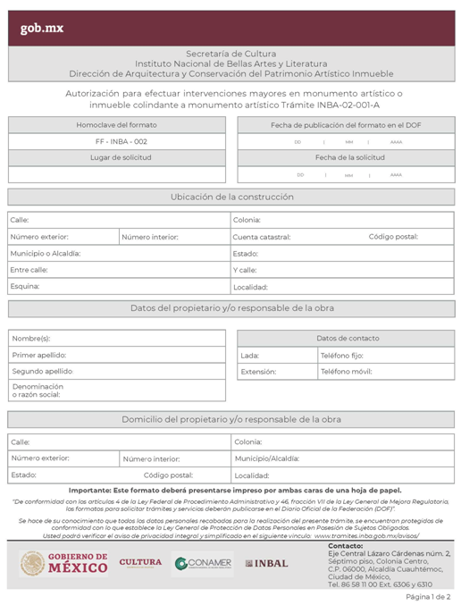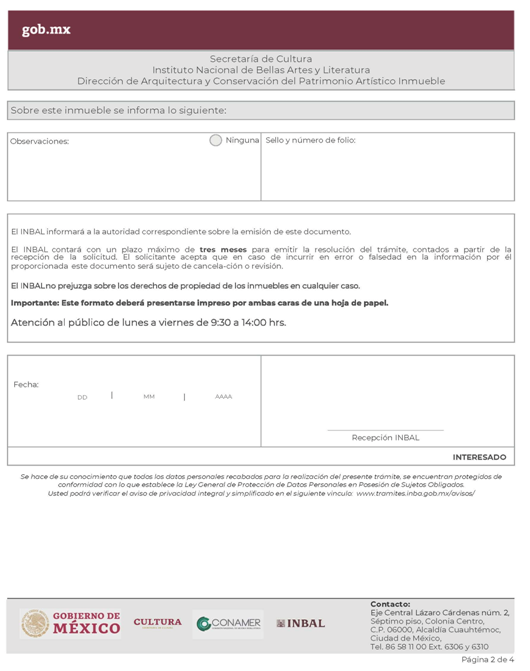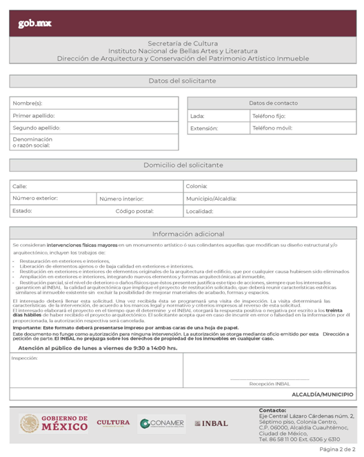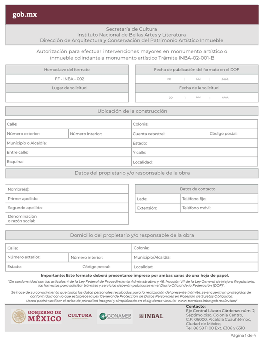 | INBAL Autorización para efectuar intervenciones mayores en monumento artístico o inmueble colindante a monumento artístico. | ||