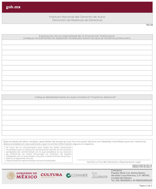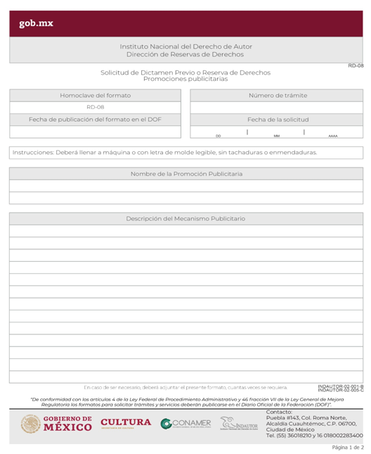 | RD-08 Solicitud de Dictamen Previo o Reserva de Derechos Promociones publicitarias. | ||