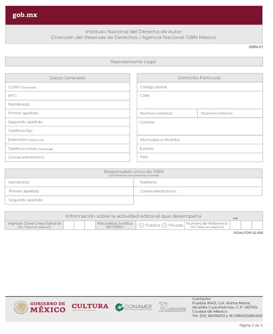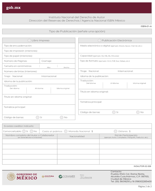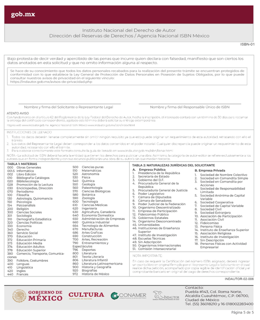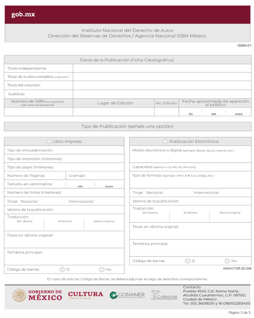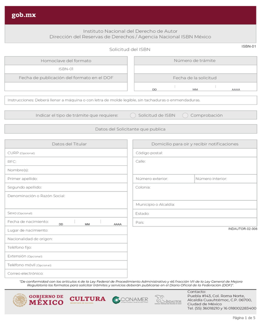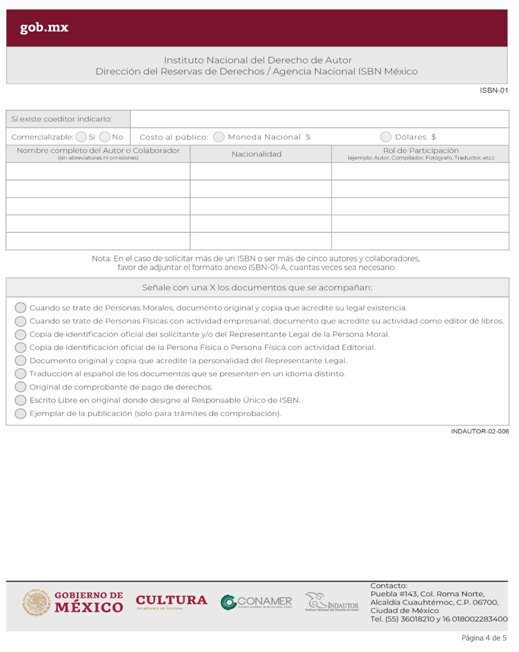 | INDAUTOR-02-006 | Asignación de Dígito Identificador ISBN. | ISBN-01 Solicitud del ISBN. |
