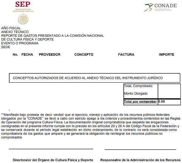 Anexo 4. Reporte de gastos presentado a la Comisión Nacional de Cultura Física y Deporte.