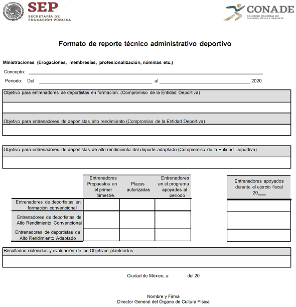 Anexo 11. Formato de reporte técnico administrativo deportivo.