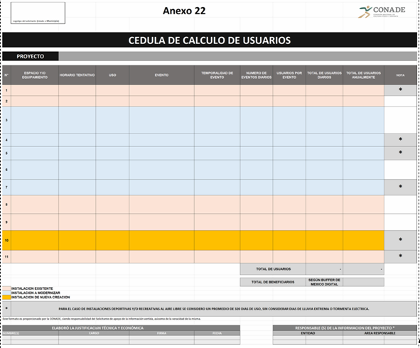 | FROMATO DE CALCULO DE BENEFICIARIOS PARA OBRAS Y/O EQUIPAMIENTO DEPORTIVO DE INFRAESTRUCTURA DEPORTIVA | |