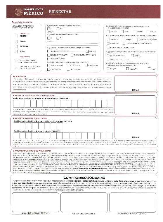 | 1. Madre, padre o tutor con niña(s) y niño(s) a su cargo de entre 1 año y hasta un día antes de cumplir los 4 años de edad. | 1. $1,600.00 (mil seiscientos pesos 00/100 M.N) bimestrales, por cada niña o niño. |
