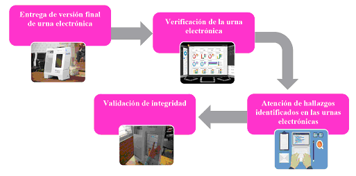 Para realizar las pruebas de verificación de las urnas electrónicas es necesario considerar las siguientes fases, que estarán contenidas en el plan de verificación: