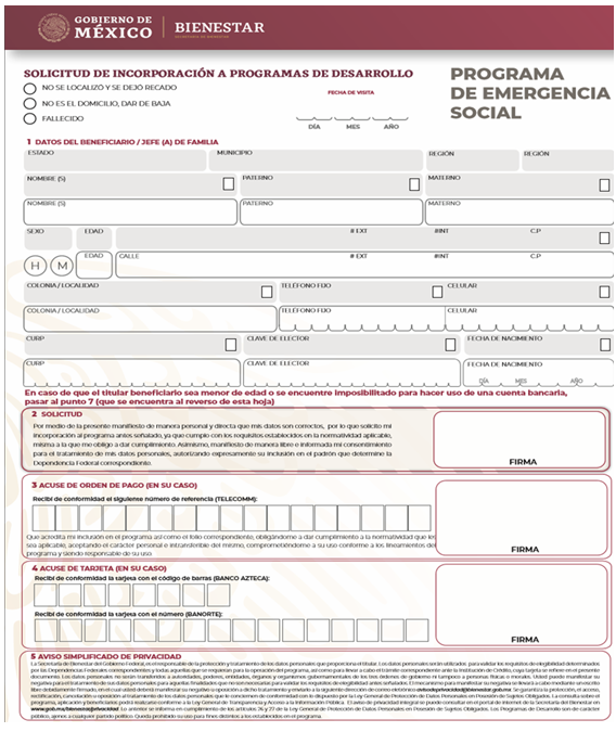 Es por ello que, a partir de 2019, el Gobierno de México crea el Programa para el Bienestar de las Personas en Emergencia Social o Natural, con la finalidad de mitigar los efectos negativos que provocan los fenómenos sociales o naturales en la esfera de los derechos sociales de las personas y/o familias, por lo que debe ser visto desde la perspectiva de protección social en una emergencia.
