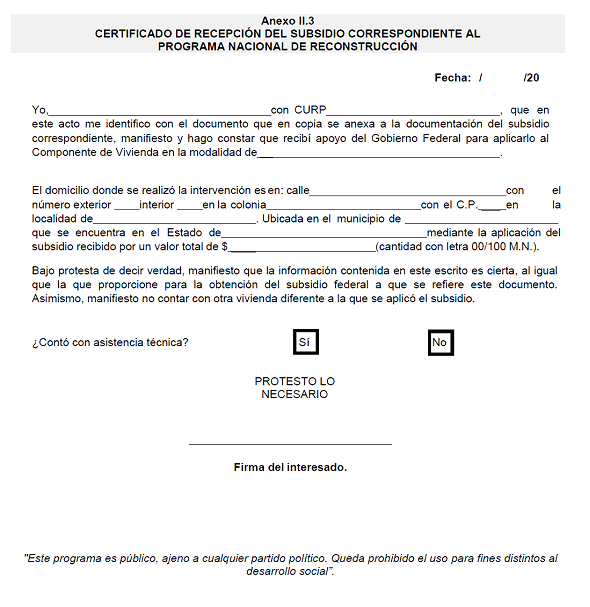 Anexo II.3 Certificado de recepción de subsidio 1/