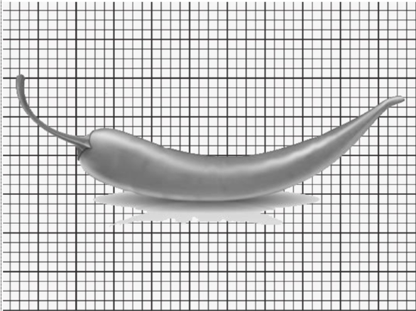 Colocar el fruto poniendo a la vista frontal la parte dañada. Colocar la cuadrícula sobre el fruto y dibujar el contorno del fruto y de la parte dañada. Contar el total de cuadros que conforman la superficie del fruto sin considerar el pedúnculo.