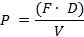 P es una magnitud física que mide el trabajo, fuerza (F) por distancia (D) dividido por el volumen (V), donde, el trabajo es la energía mecánica utilizada para mover una cantidad de volumen de fluido.