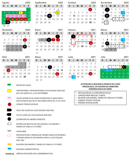 ACUERDO número 15/08/20 por el que se establecen los calendarios escolares para el ciclo lectivo 2020-2021, aplicables en toda la República para la educación preescolar, primaria, secundaria, normal y demás para la formación de maestros de educación básica.