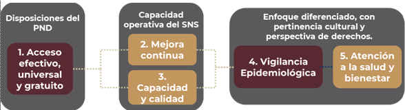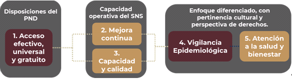 | 2.- Incrementar la eficiencia, efectividad y calidad en los procesos del SNS para corresponder a una atención integral de salud pública y asistencia social que garantice los principios de participación social, competencia técnica, calidad médica, pertinencia cultural y trato no discriminatorio, digno y humano. |