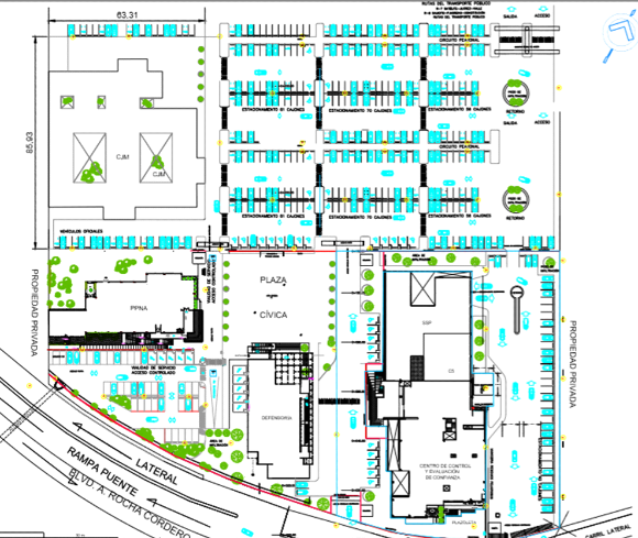 El Centro de Justicia para las Mujeres estará ubicado en el inmueble denominado Fracción de Simón Díaz, s/n, denominado Pedrera de Guadalupe, San Luis Potosí, S.L.P., con una superficie de 56,861.00 m2, de la cual se destinarán 8,066 m2 para la construcción del Centro de Justicia para las Mujeres del Estado de San Luis Potosí.
