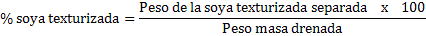 El cálculo para determinar el porcentaje de participación de soya texturizada en el producto se hará de la siguiente manera:
